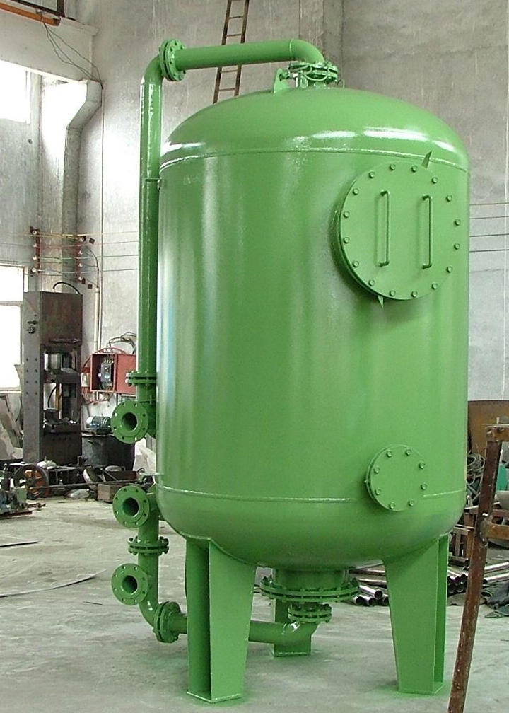 石英砂濾器是利用一種或幾種過濾介質(zhì),常溫操作、耐酸堿、氧化,PH適用范圍為2-13。系統(tǒng)配置完善的保護(hù)裝置和監(jiān)測儀表,且具有反沖洗功能,泥垢等污染物很快被沖走,耗水量少,按用戶要求可設(shè)置全自動(dòng)功能。在一定的壓力下,使原液通過該介質(zhì)的觸絮凝、吸附、截留,去除雜質(zhì),從而達(dá)到過濾的目的。其內(nèi)裝的填料一般為:石英砂、無煙煤、顆粒多孔陶瓷、錳砂等,用戶可根據(jù)實(shí)際情況選擇使用。其過濾精度在0.005-0.01m之間,可有效去除膠體微粒及高分子有機(jī)物。