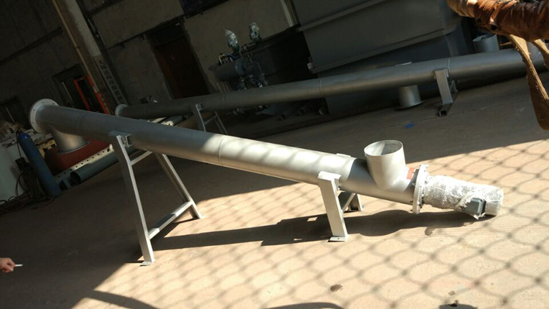 當(dāng)螺旋軸轉(zhuǎn)動(dòng)時(shí),由于物料的重力及其與槽體壁所產(chǎn)生的摩擦力,使物料只能在葉片的推送下沿著輸送機(jī)的槽底向前移動(dòng),其情況好像不能旋轉(zhuǎn)的螺母沿著旋轉(zhuǎn)的螺桿作平移運(yùn)動(dòng)一樣。物料在中間軸承的運(yùn)移,則是依靠后面前進(jìn)著的物料的推力。所以,物料在輸送機(jī)中的運(yùn)送,完全是一種滑移運(yùn)動(dòng)。為了使螺旋軸處于較為有利的受拉狀態(tài),一般都將驅(qū)動(dòng)裝置和卸料口安放在輸送機(jī)的同一端,而把進(jìn)料口盡量放在另一端的尾部附近。 旋轉(zhuǎn)的螺旋葉片將物料推移而進(jìn)行輸送,使物料不與螺旋輸送機(jī)葉片一起旋轉(zhuǎn)的力是物料自身重量和螺旋輸送機(jī)機(jī)殼對(duì)物料的摩擦阻力。葉片的面型根據(jù)輸送物料的不同有實(shí)體面型、帶式面型、葉片面型等型式。螺旋輸送機(jī)的螺旋軸在物料運(yùn)動(dòng)方向的終端有止推軸承以隨物料給螺旋的軸向反力,在機(jī)長較長時(shí),應(yīng)加中間吊掛軸承。